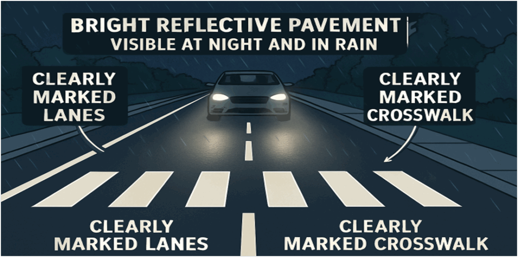 As automated and semi-autonomous vehicle technology becomes more prevalent, the importance of well-maintained pavement markings grows. These advanced vehicles use sensors, cameras, and artificial intelligence to interpret and follow road markings, relying heavily on their clarity and consistency. Suppose markings are faded, missing, or inconsistent. In that case, it can cause alignment issues for these systems and, in some cases, might even force the vehicle to disengage its self-driving features entirely, returning control to the human driver and potentially increasing risk.
